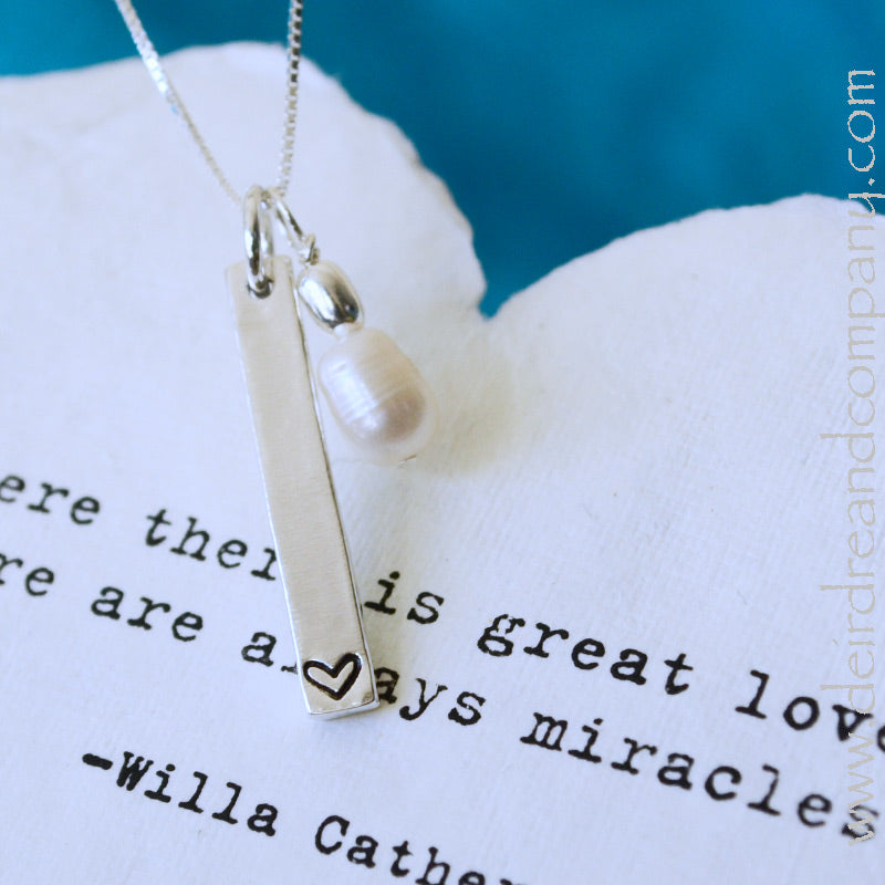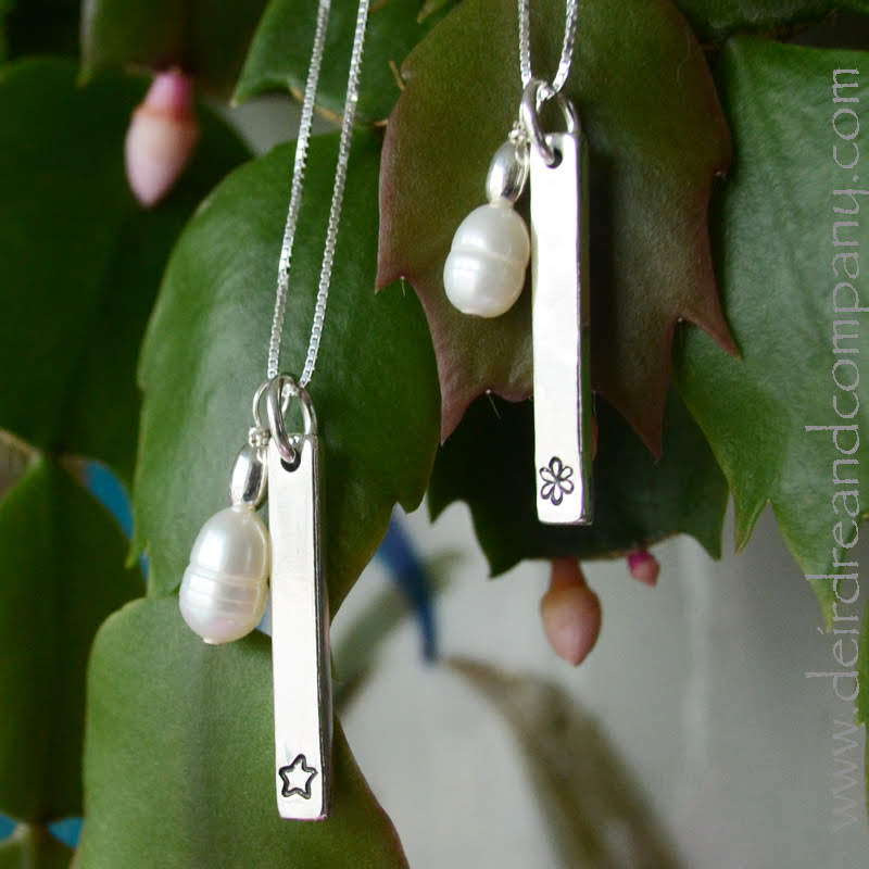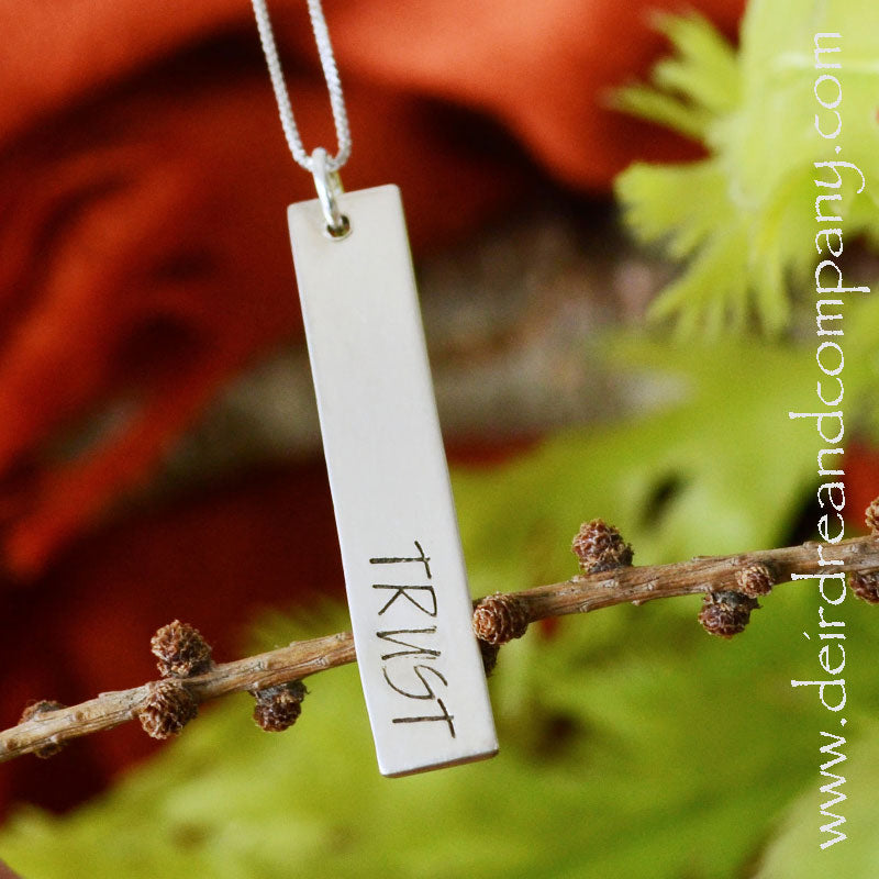 Made with love and meant to bless, these sterling silver Blessing Bar Necklaces keep your blessings close to your heart. They come in 3 sizes and on a variety of chains. Each bar is handcrafted in sterling silver and comes hand-stamped with the words or symbols of your choice. Choose from our beautiful collection, or create a custom one of your own.