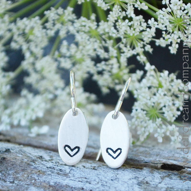 Sweet little heart earrings in Sterling Silver (1/2” x 1/4”) on sterling silver ear hooks. They come boxed with your choice of insert card.