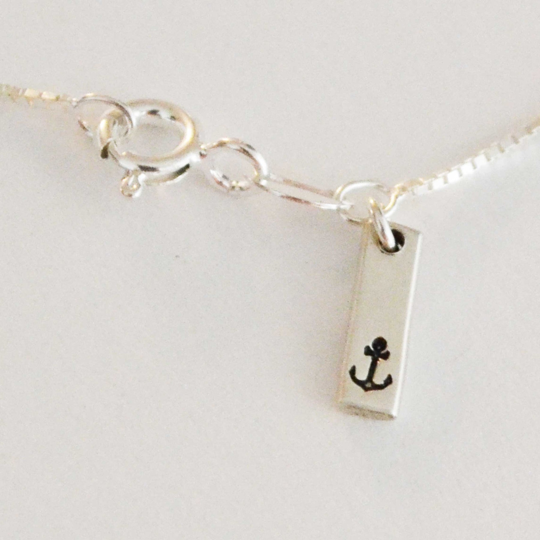 Each sterling silver bar (approximately 3/8" x 1/8") is individually stamped and therefore unique; character count for custom word bars are up to 4 letters/numbers. Add your tiny word to the "Order Note" in the Shopping Cart. Initials are a great tiny word.