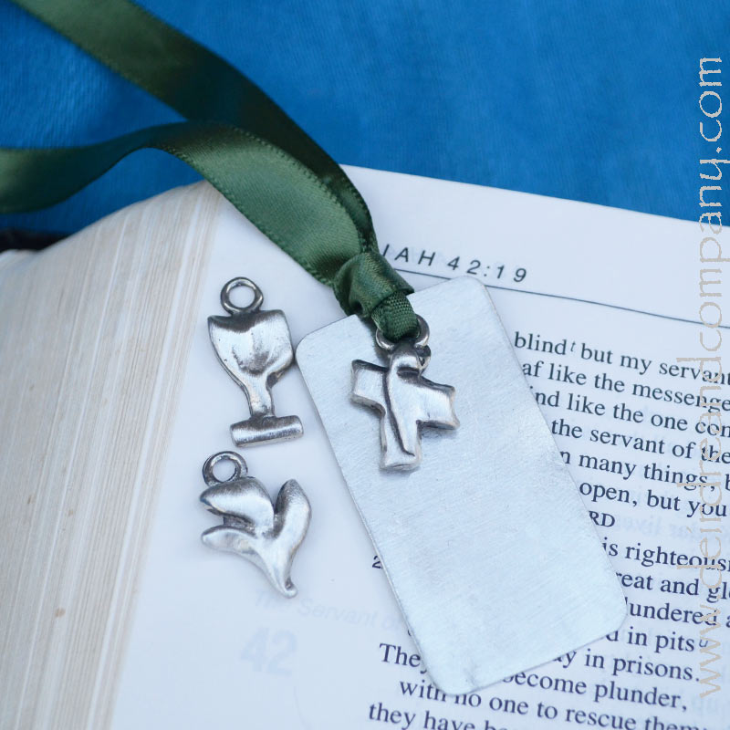 These simply beautiful ornaments and bookmarks are hand-crafted in pewter, and tied with a colorful ribbon. Packaged with a bookmark, they make the perfect little, budget-friendly gift to slip in a card, encourage a friend, or bless a group.
