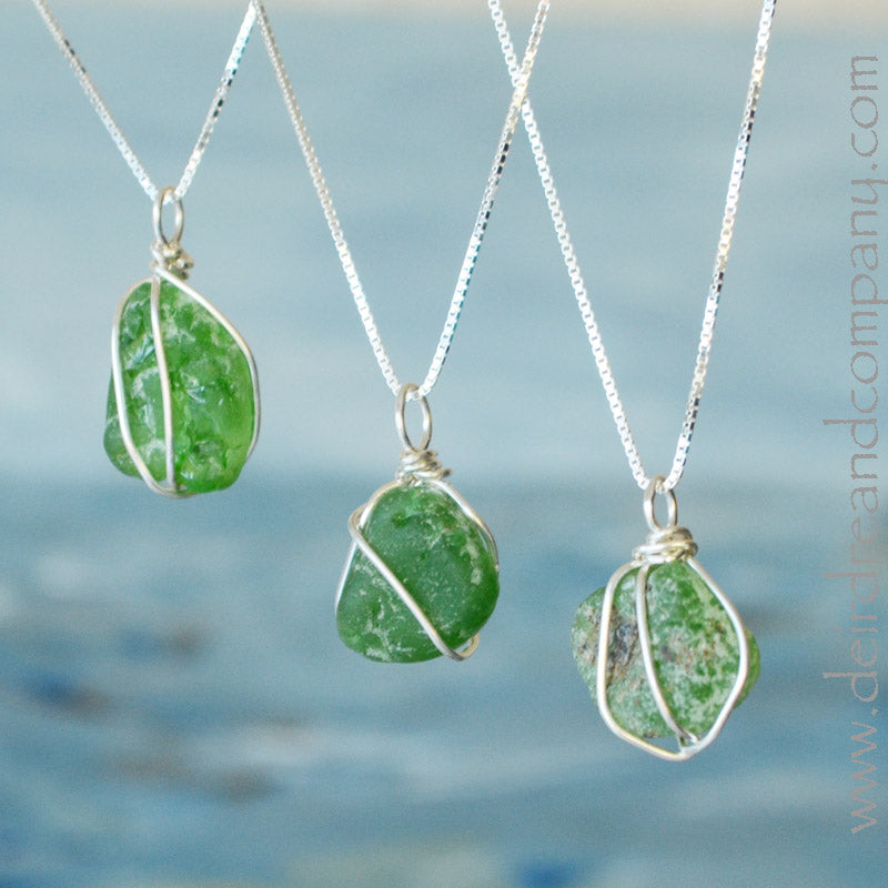 Sea Glass Wrapped in Silver Wire to Create a Vacation Memory