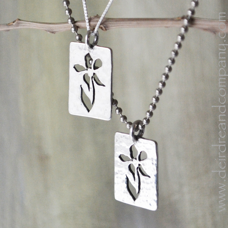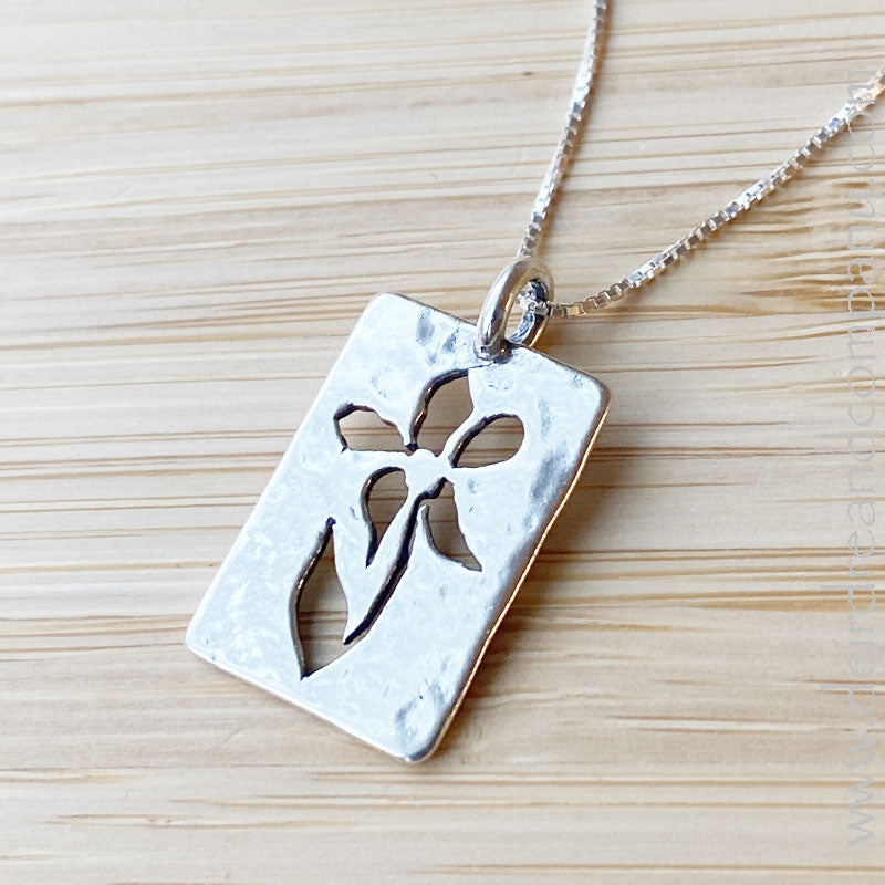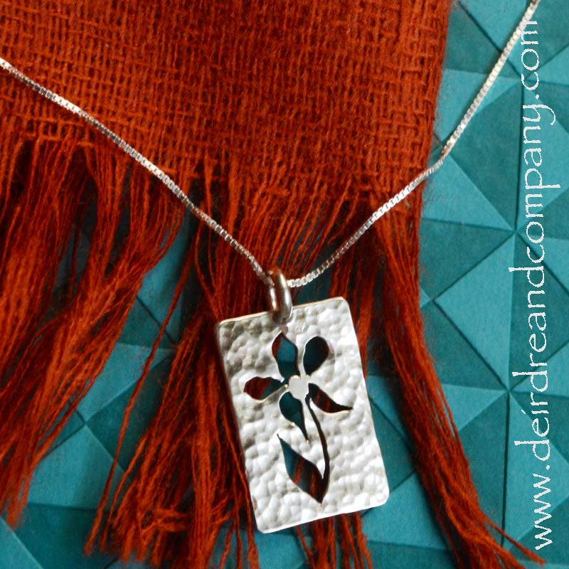 Sterling silver flower pendant (7/8" x 1/2") on 18" sterling silver box chain or 18" steel ball chain.