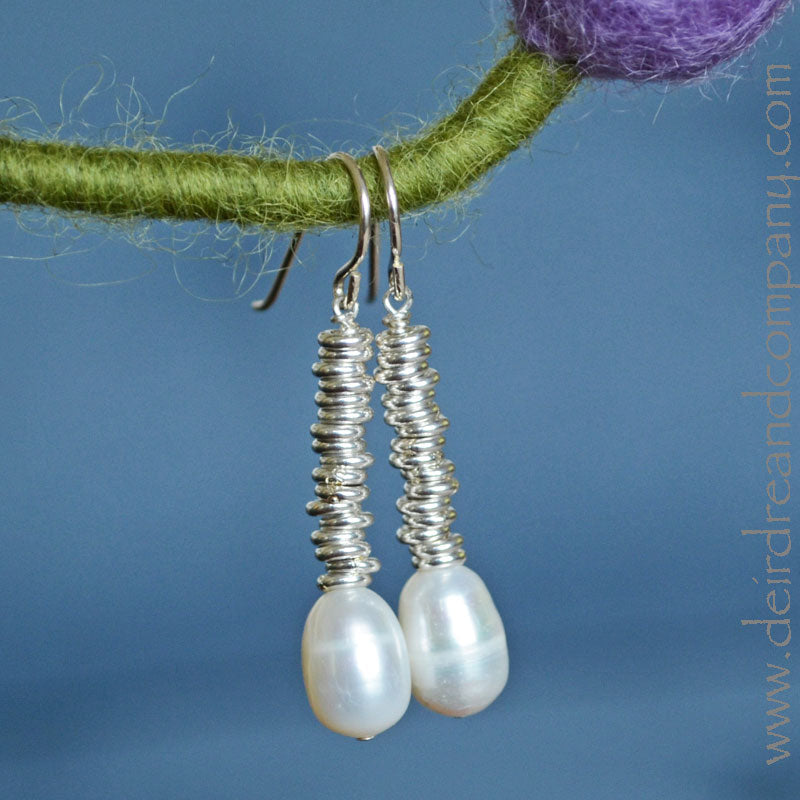 Nope, the pearls don’t come from a pond; they are normal freshwater pearls. We just like calling them Long Pond Pearl Earrings. These sterling silver beaded earrings with freshwater pearls are 1 1/4" long on sterling silver ear hooks and come boxed with your choice of insert card. Choose pearl color from the drop down menu. Pearl size and shape vary.