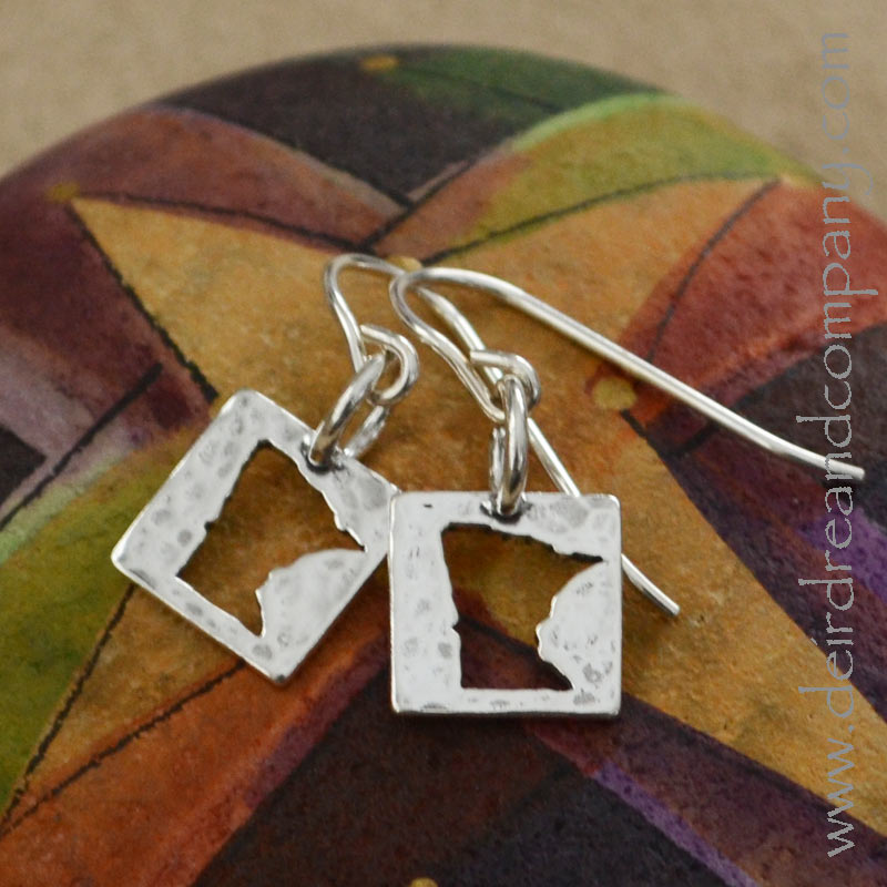 Sterling silver, hammered Minnesota Cut-Out Charms (3/8" square) on sterling silver ear hooks. We have a matching necklace too!