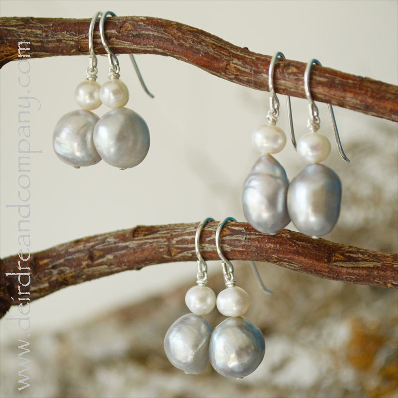 Beautiful freshwater pearls in white and silver on sterling silver earring hooks (1" x 1/2").  Please note there will be variations as the pearls are all unique, so no two pairs are the same.  Come boxed.